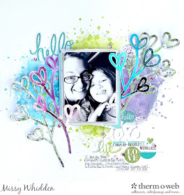 Die cuts like this are so fun to create with because of the dimension. The ends of florals like this curl up so they look like they’re coming right off the page. I added a blue bit of paper behind my photo as well as some tissue paper and a bit of foam. I finished the page off with some purple sequins. I used the iCraft Mixed Media Adhesive to glue everything down.